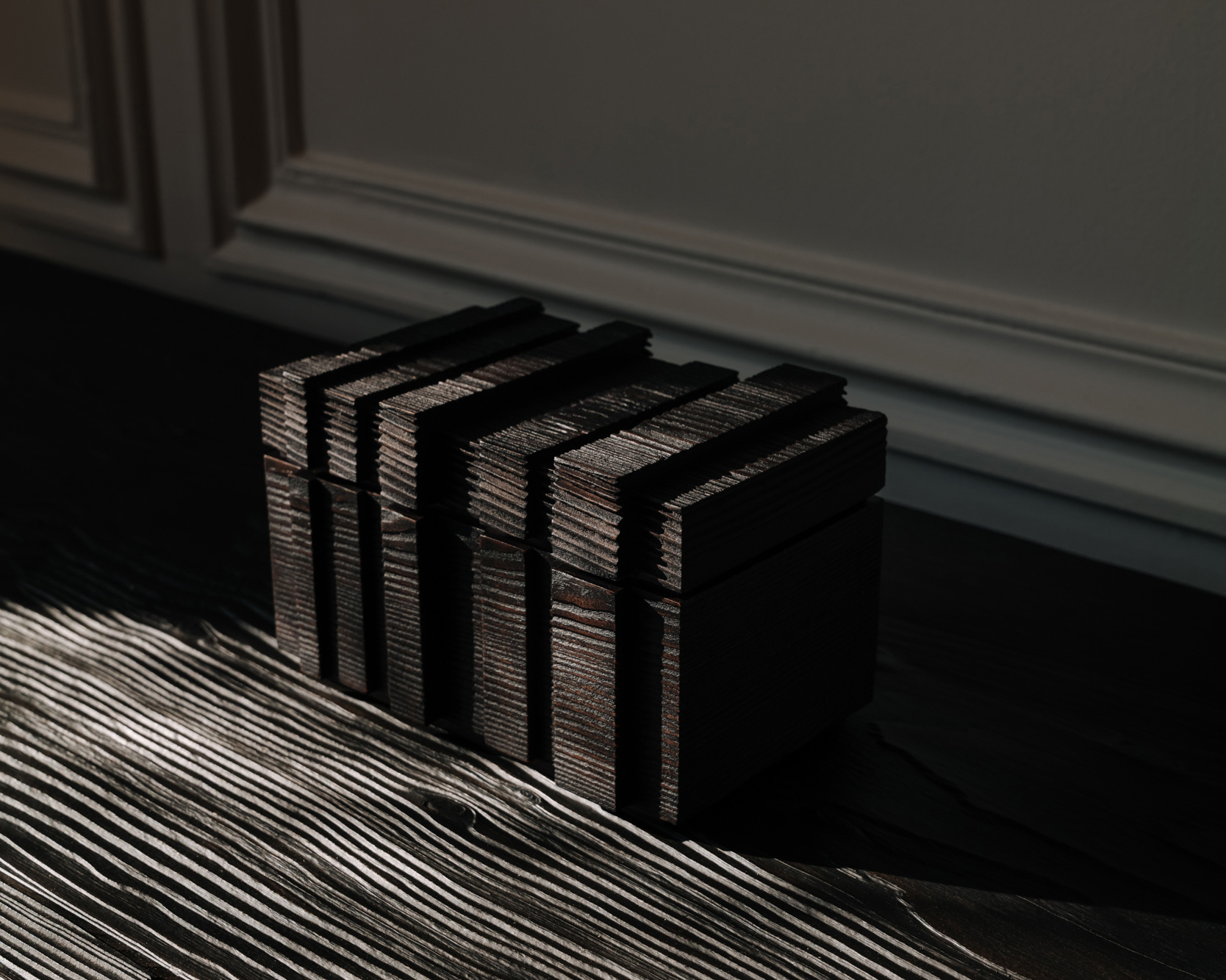 Les pièces de cette collection, à la fois sculptures et présences, racontent une histoire d’ancrage et de transcendance, où le bois devient un prolongement vivant de la pierre, une matière habitée.